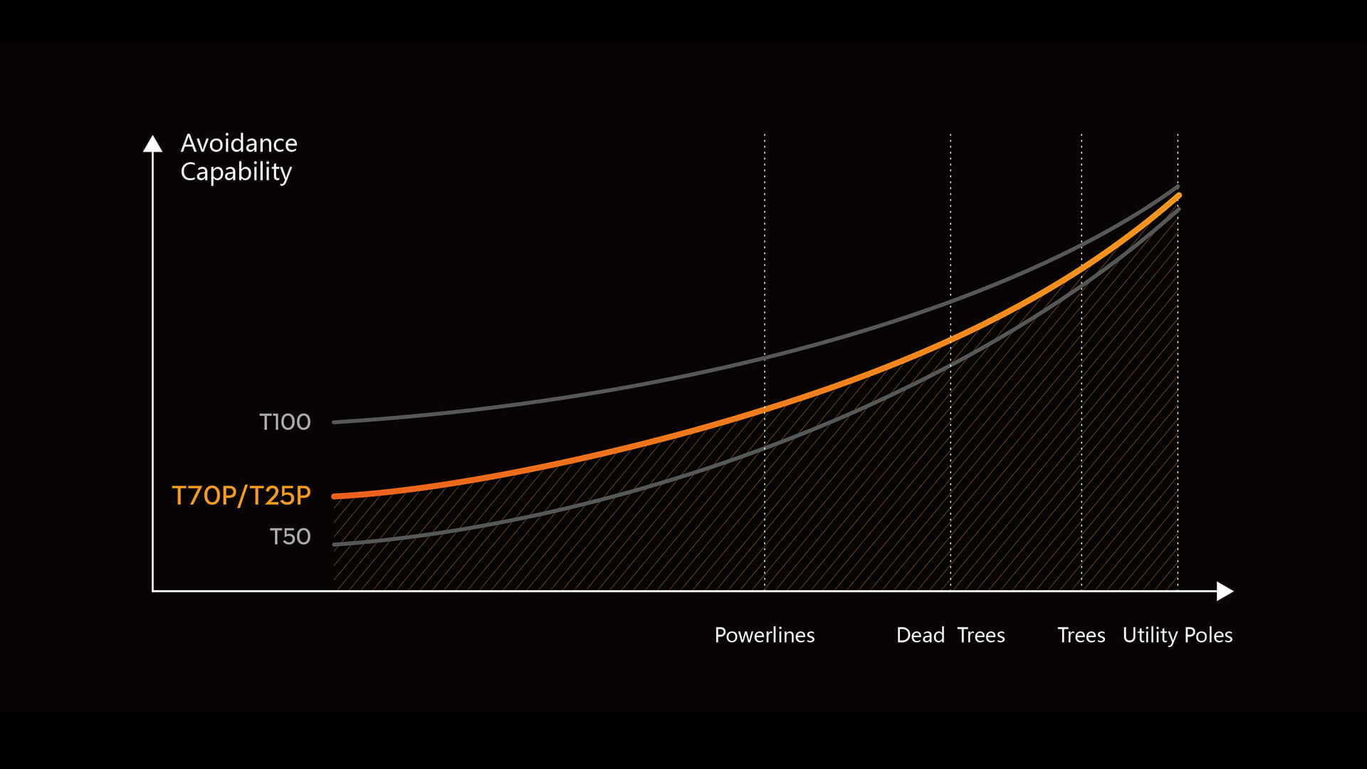 El Sistema de Seguridad 3.0 ayuda al T25P a detectar postes y árboles, permitiendo una evitación de obstáculos confiada. En el caso de los obstáculos de baja reflectividad como los cables aún deben marcarse en la planificación previa para asegurar vuelos más seguros.